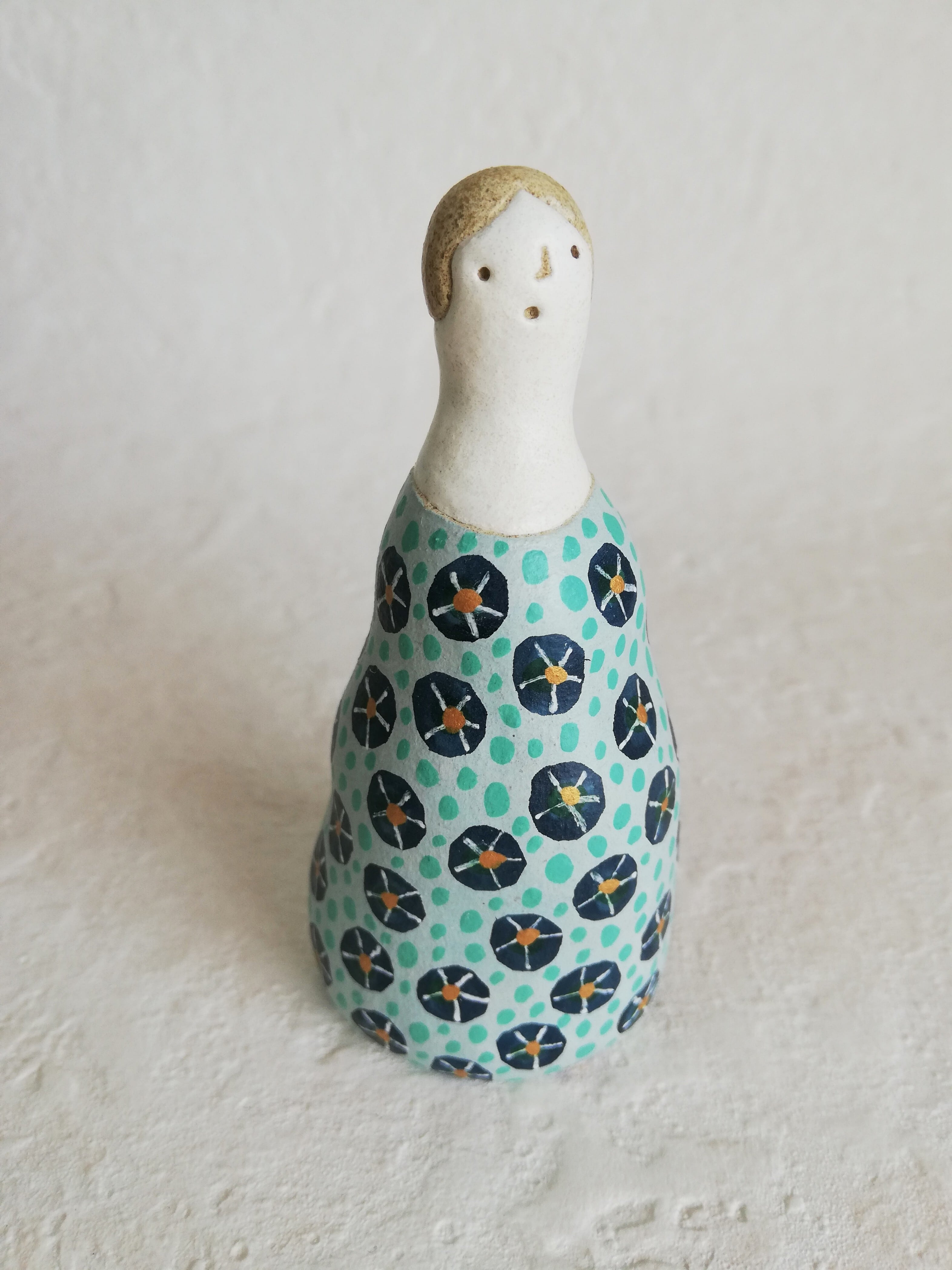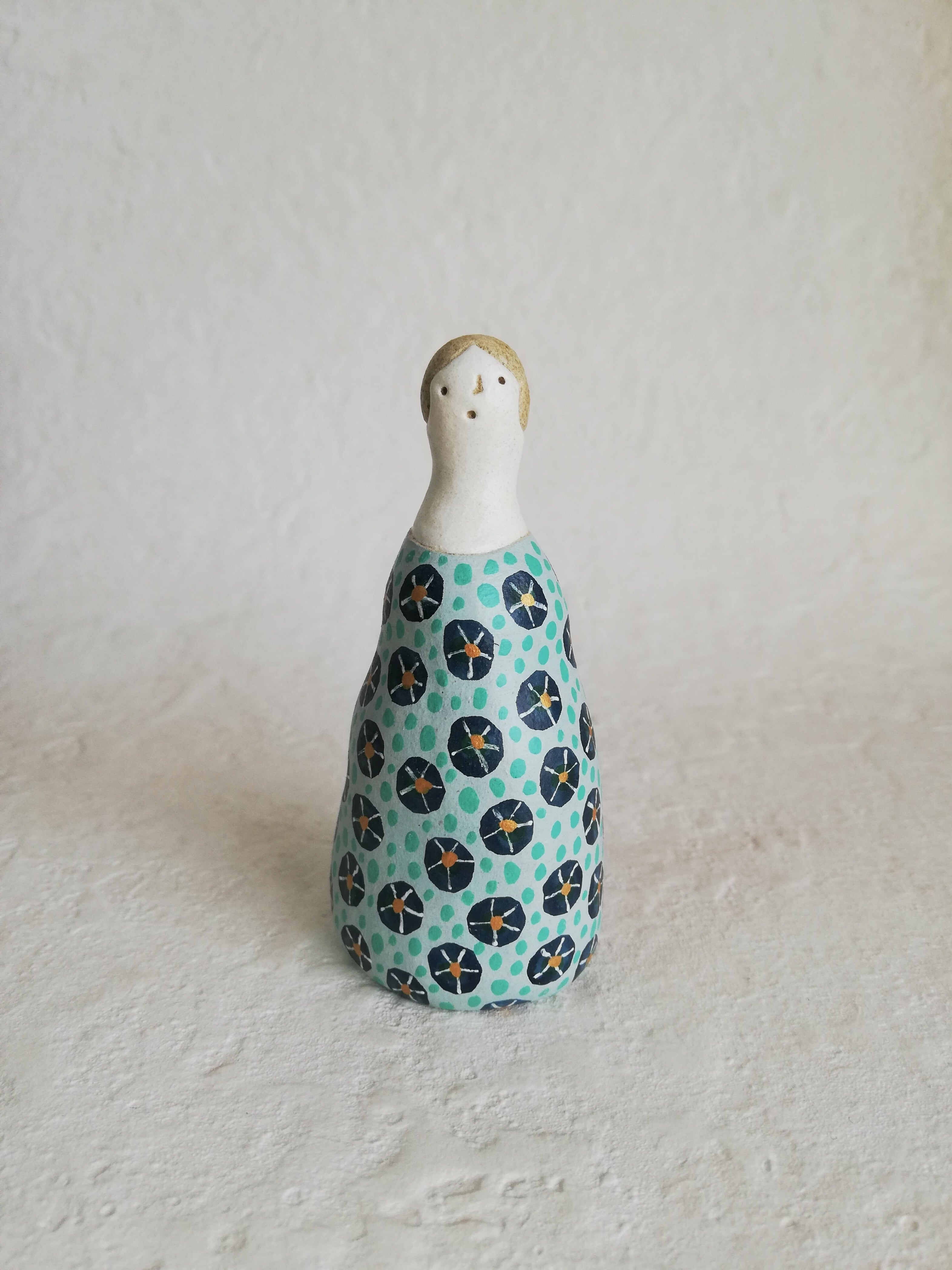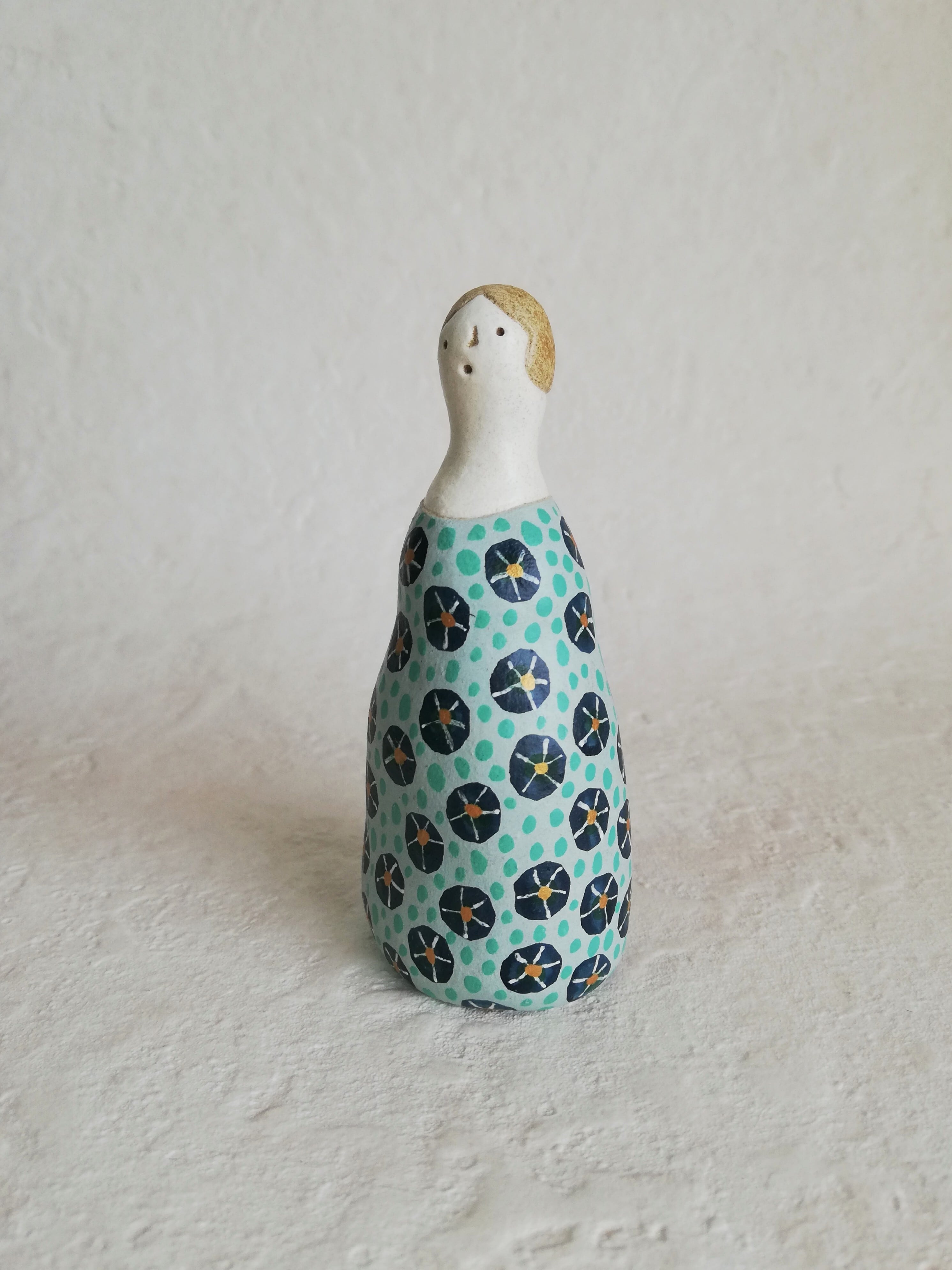 ふくよかなフォルムと、水色のワンピース。