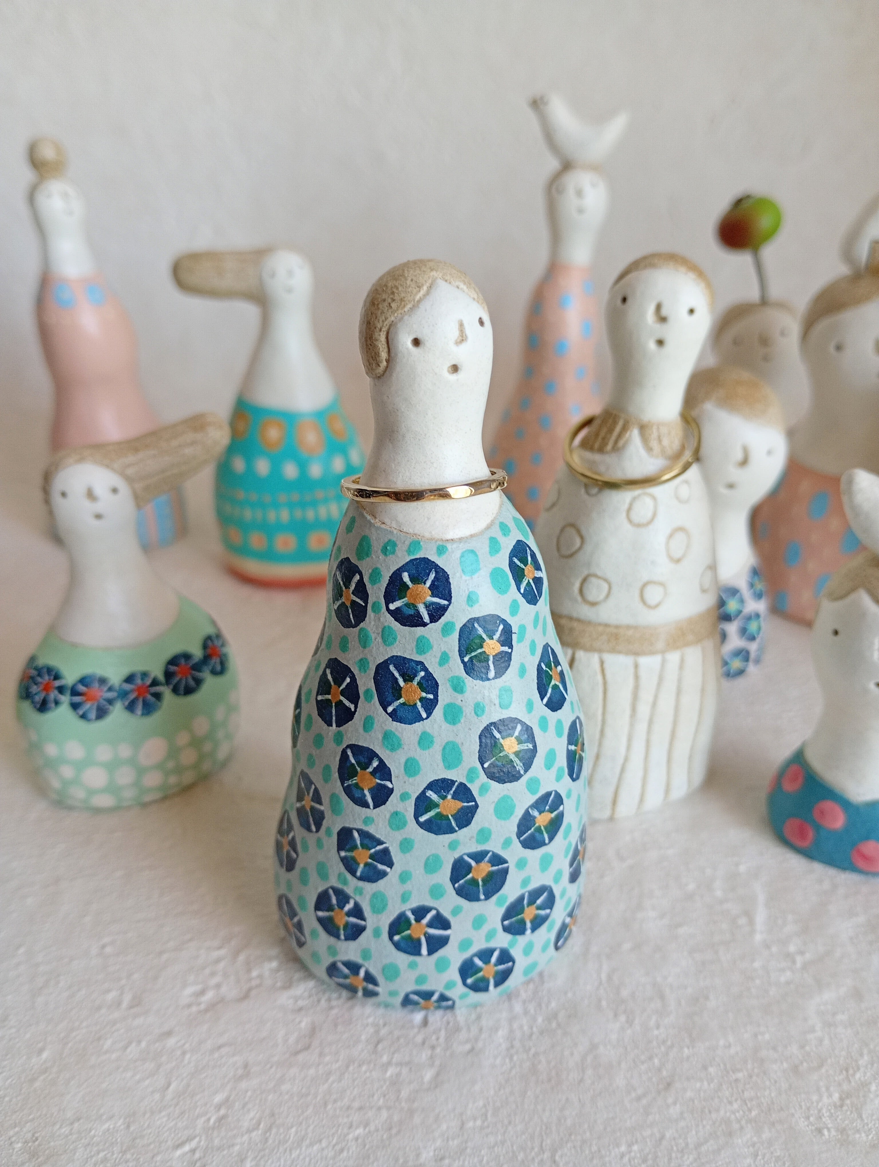 ひとりずつ、生きる気配をとらえるように、手びねりで形づくっています。