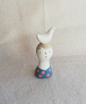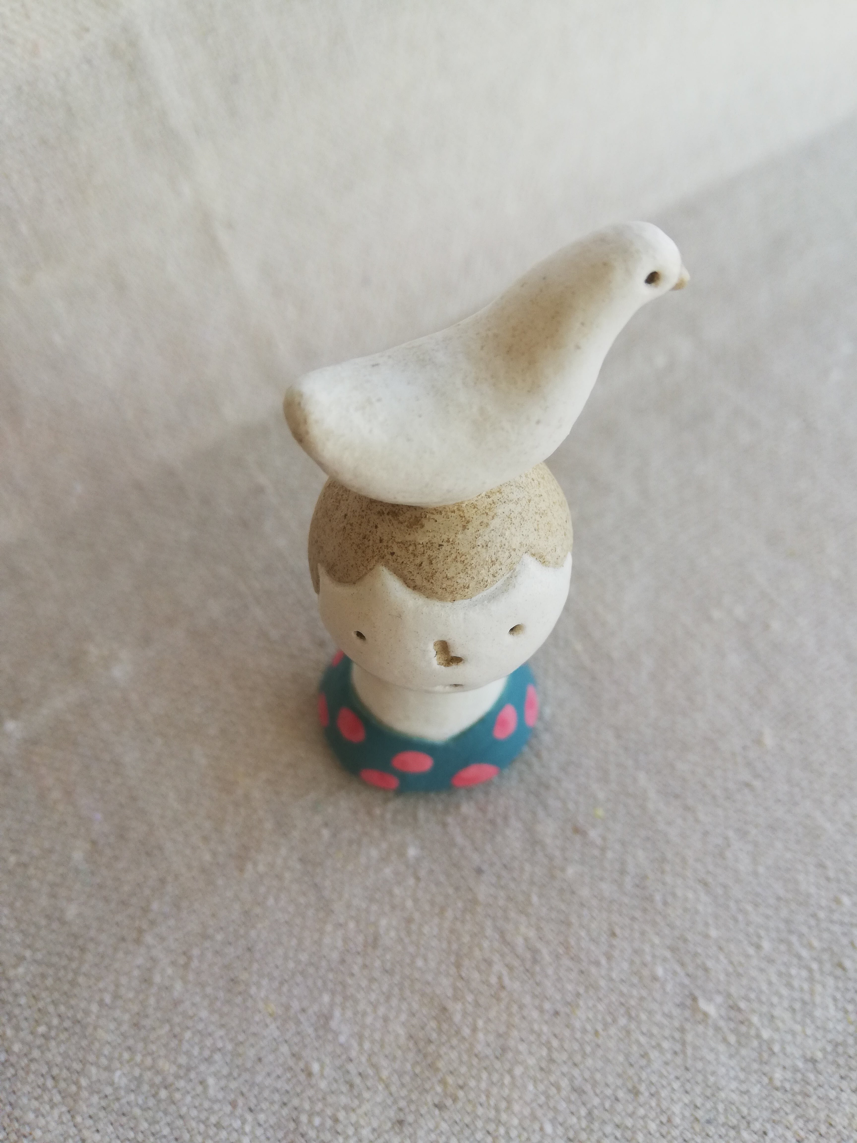 頭に白い鳥をのせているひと。