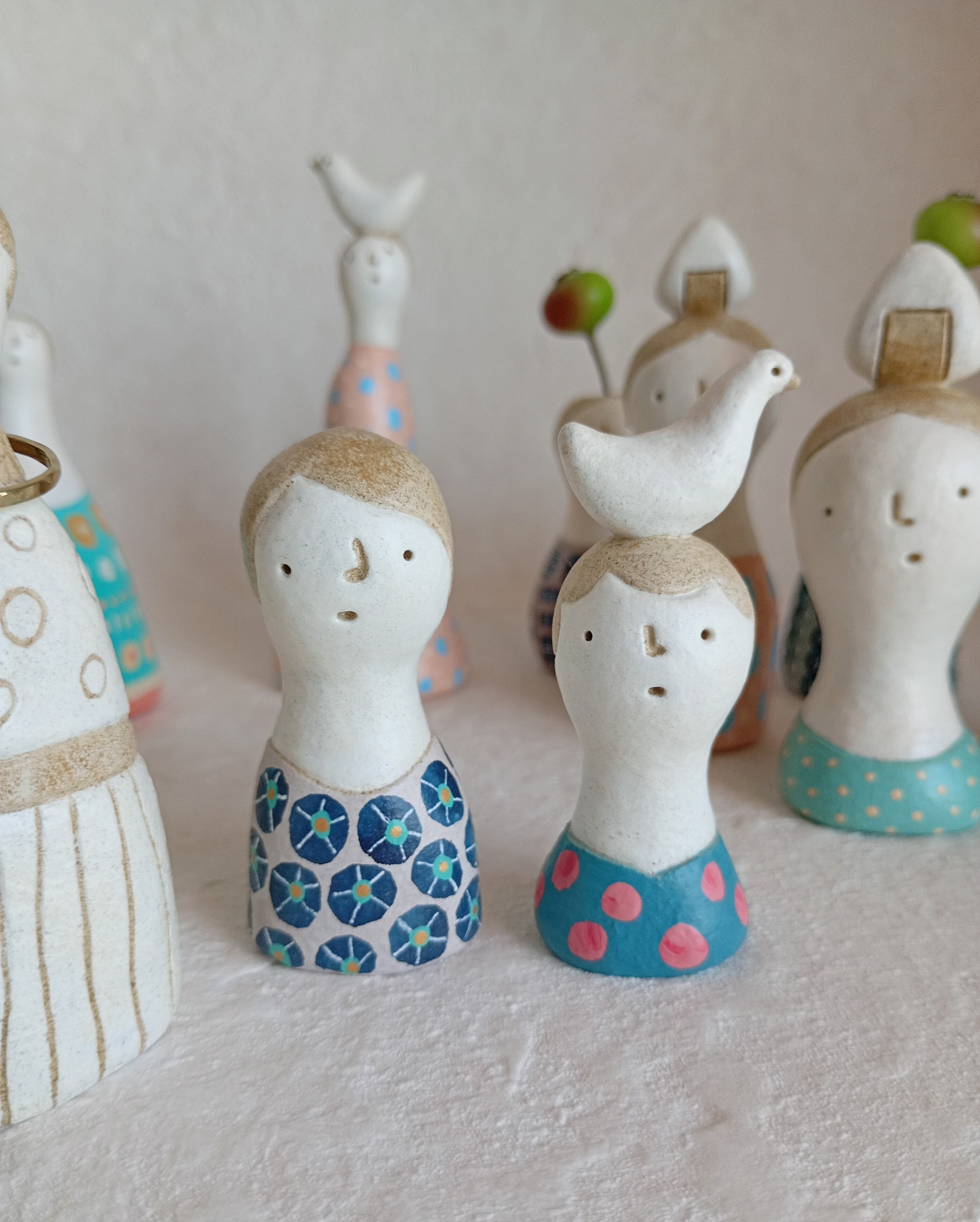 ひとりずつ、生きる気配をとらえるように、手びねりで形づくっています。